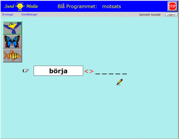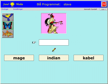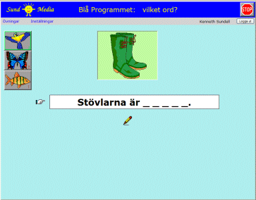I annat fall tas de bokstäver bort som inte finns i det sökta ordet och barnet får nu en möjlighet att stava till det sökta ordet illustrerat av bilden.