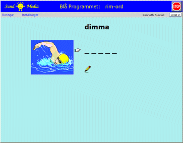 - Under ordet visas några understrykningstecken (_). Varje tecken motsvarar en bokstav i det ord som söks. Ordet som söks ska rimma på det ord som visas.