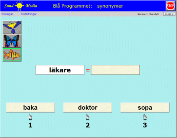 - Ett textkort visas med ett ord som är ordet som man ska hitta en synonym till.