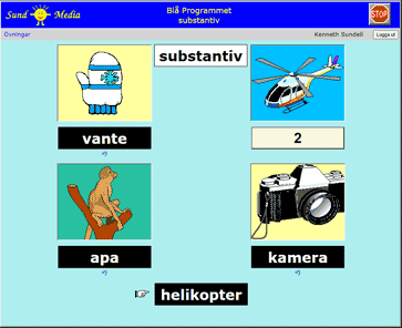- En bild visas på ett djur föremål etc samt ett textkort med ett substantiv.